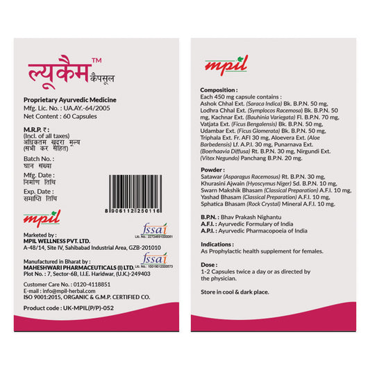 Leucam Capsule | Supplement for PCOS & UTI Relief | 60 Capsules