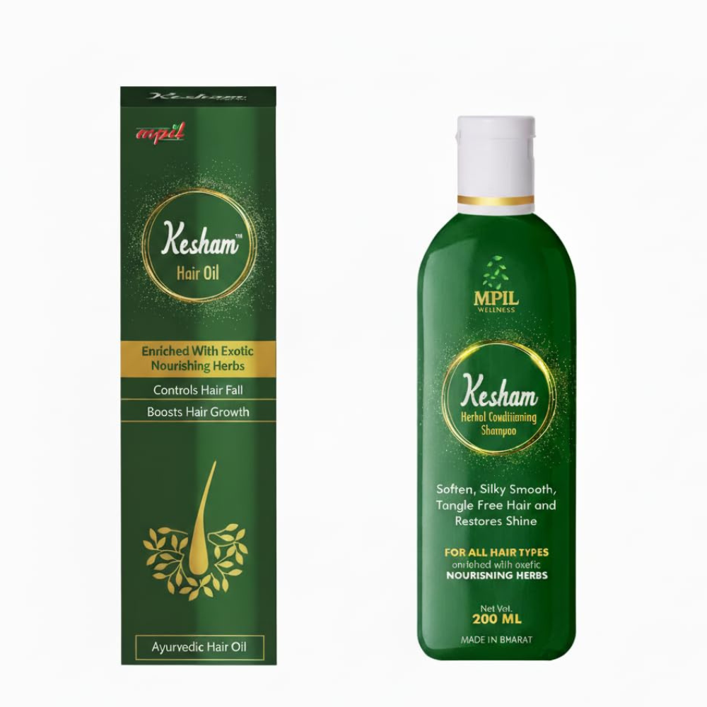 Stop hair fall and dandruff naturally with the trusted power of Ayurveda. The MPIL Kesham Hair Kit is a complete 4-step treatment designed to give you thicker, shinier, and healthier hair from root to tip.