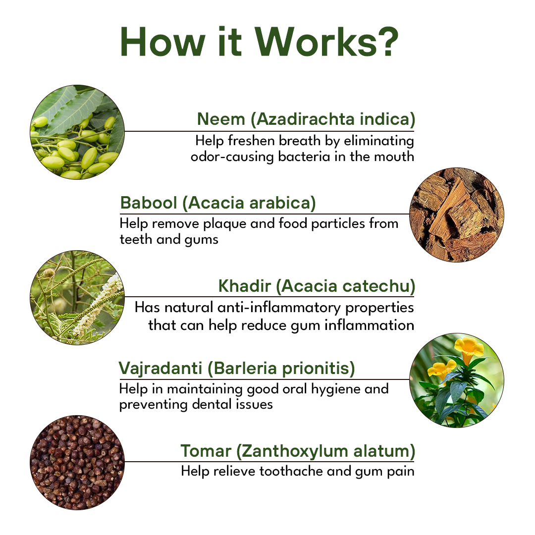 ingredients to provide comprehensive dental care. This herbal blend helps maintain oral hygiene,