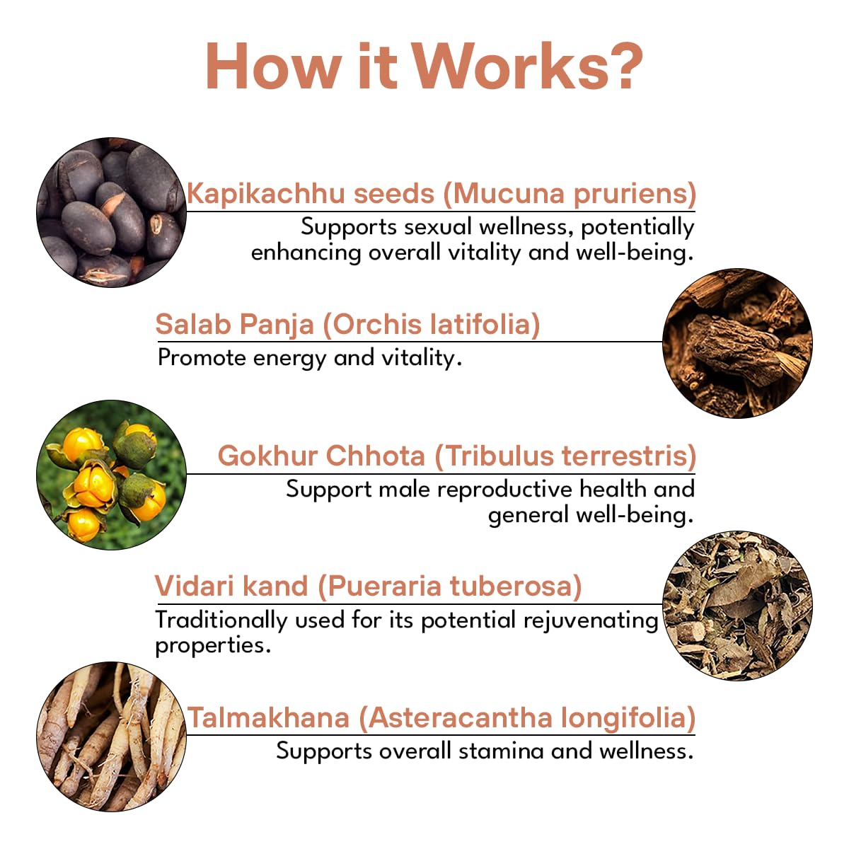 Salampanja, Vidarikand, and Kali Musli, known for their efficacy in improving reproductive health,